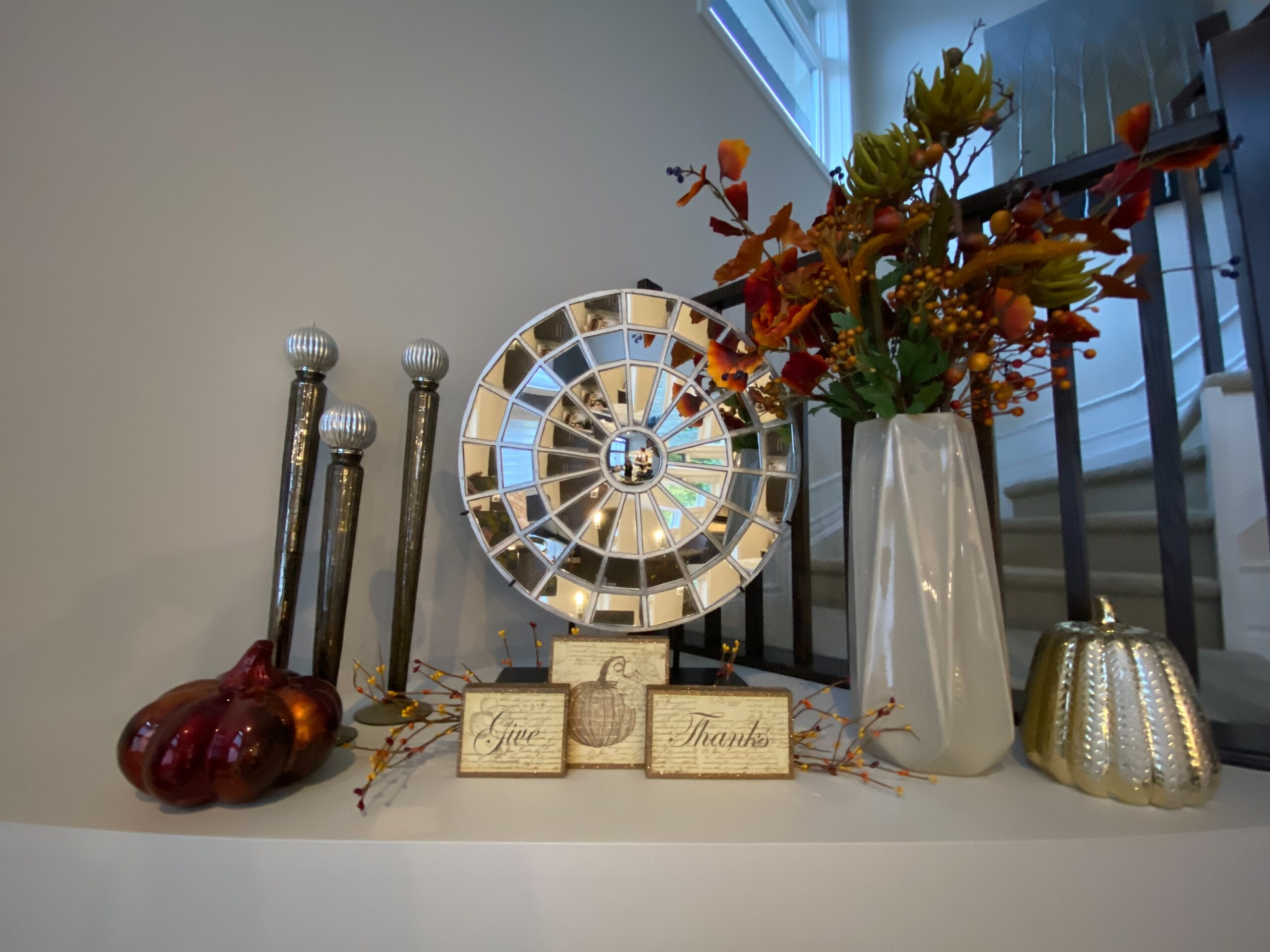 So… what happens when Carole only gets around to asking our decorator, Lori Butler, for a fall decorating video AFTER Thanksgiving has already happened? Simple…. it doesn’t happen as Lori is on top of this decorating thing and always ahead of the game.