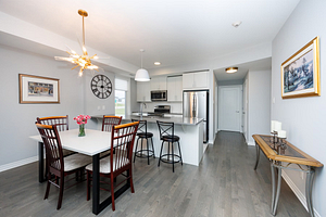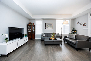 Tasteful decor through the entire unit with natural light flooding in from southwestern facing windows. Modern finishes like quartz countertops, pot lighting, sleek cabinetry make this condo luxurious.